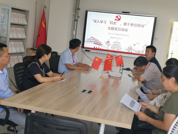 为深入学习贯彻习近平总书记关于加强党史、新中国史学习教育的重要论述,帮助党员干部了解掌握党史、新中国史,进一步增强“四个意识”、坚定“四个自信”、做到“两个维护”,代数与几何党支部于7月9日下午组织开展党史学习教育主题党日活动。支部书记唐剑主持活动。