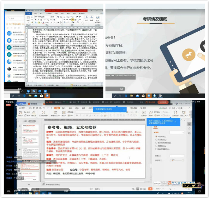 6月7日下午,学院通过钉钉直播的方式举办学生考研交流会活动。针对不同年级学生对考研信息需求的不同,本次活动分为高、低年级两个直播间同时进行,有13名已确认录取中国人民大学、兰州大学、苏州大学、中南财经政法大学等知名院校硕士研究生的2020届毕业生参加活动,学院2017、2018、2019级的705名同学参与交流。活动中,毕业生们对考研过程中各个环节的准备工作、注意事项、重点知识等做了全面详细的介绍,并在交流环节中回答了大家提出的问题,就一些共同关注的事项进行了交流探讨。本次交流会为学生提供了考研学习交流的平台,解答了许多非毕业班学生关注的问题,有利于在学院中形成科学理性备战考研的良好风气。