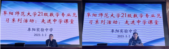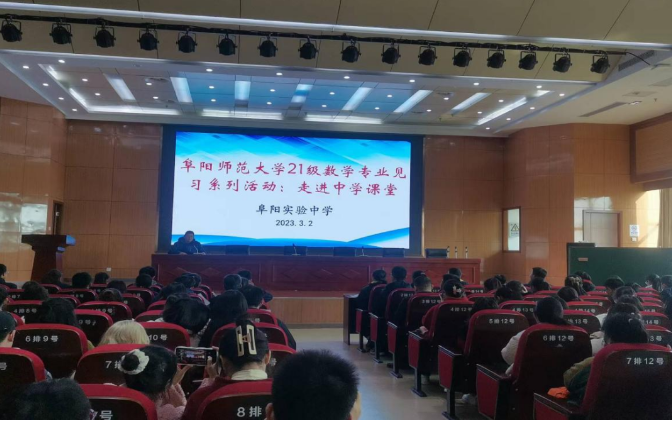 为有效提高见习质量,让学生走进中学课堂,欣赏教学名师与教学能手的课堂展示,学习一线教学专家的听课和点评视角,2023年3月2日下午,我院在阜阳实验中学综合楼十楼安排了一场生动的数学案例教学展示和专家评课活动。阜阳市教科所副所长王志刚教授、阜阳师大附属中学刘国超教授、阜阳十九中学教研组长付翔老师,阜阳市多位一线骨干教师代表以及数学与统计学院2021级数学与应用数学(师范)专业全体学生、学院部分见习指导老师参加了此次活动,活动由阜阳实验中学宣传中心主任宋磊主持。