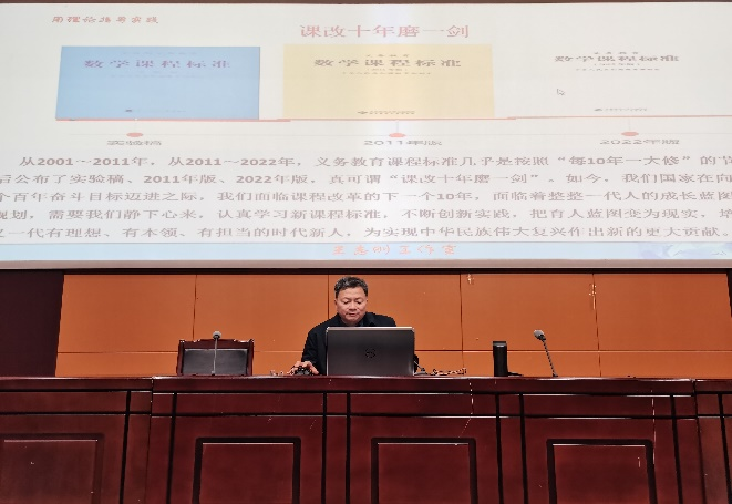 为有效提高见习质量,深入了解中学数学教育教学的最新动态,强化师范生对中学数学新课标、新课程和新教学的理解,2月28日晚上,我院邀请中学正高级教师、阜阳市教育局教科所副所长王志刚教授在F楼报告厅作了一场题为“‘三新’背景下的数学教育教学”的报告,学院2020级数学与应用数学(师范)专业全体学生和学科教学(数学)专业部分研究生等聆听了报告会,报告会由学院院长盛兴平教授主持。