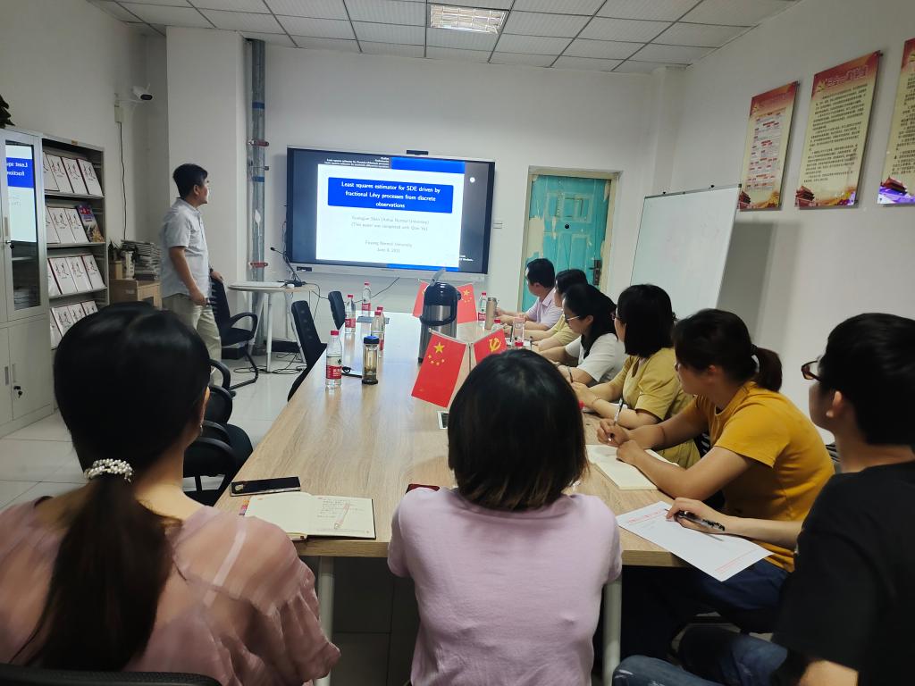 6月9日上午,安徽师范大学博士生导师申广君教授应我院邀请,在躬行D楼517会议室,作题为“Least squares estimator for SDE driven by fractional Levy processes from discrete observations”的学术报告。统计系主任张冕主持报告会,统计系全体教师现场聆听报告。