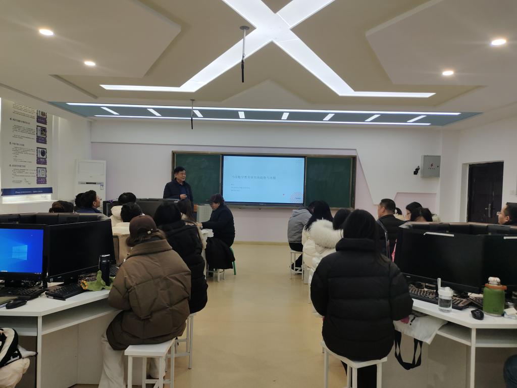 为提高学科教学(数学)硕士研究生论文选题,全面提高人才培养质量,12月20日下午,我院邀请南京师范大学数学科学学院喻平教授在躬行D楼515实验室,作了一场题为“当前数学教育研究的趋势与问题”的学术报告。学院院长盛兴平、副院长孙娓娓、部分硕士研究生导师及全体硕士研究生聆听了此次报告,报告会由盛兴平主持。
