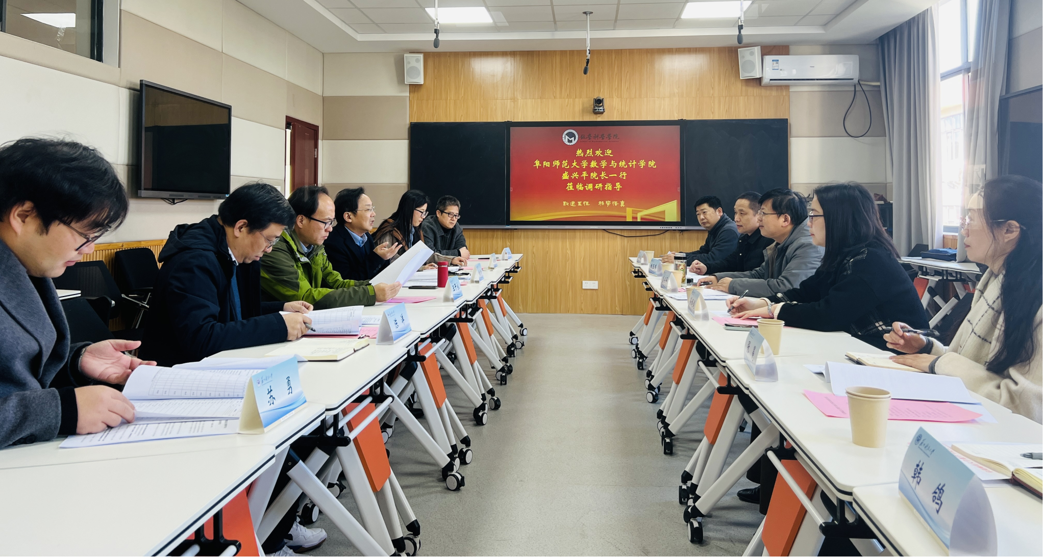 盛兴平对苏州科技大学数学科学学院的热情接待、学科专业和研究生培养的经验与做法的无私分享表示感谢,并介绍了学院的本科专业人才培养特点、硕士学位点的申报建设、师资队伍等情况。最后,双方就专业培养方案调整与优化进行了深入讨论,在优化课程建设、创新课程设计、提高课程质量进行广泛交流。