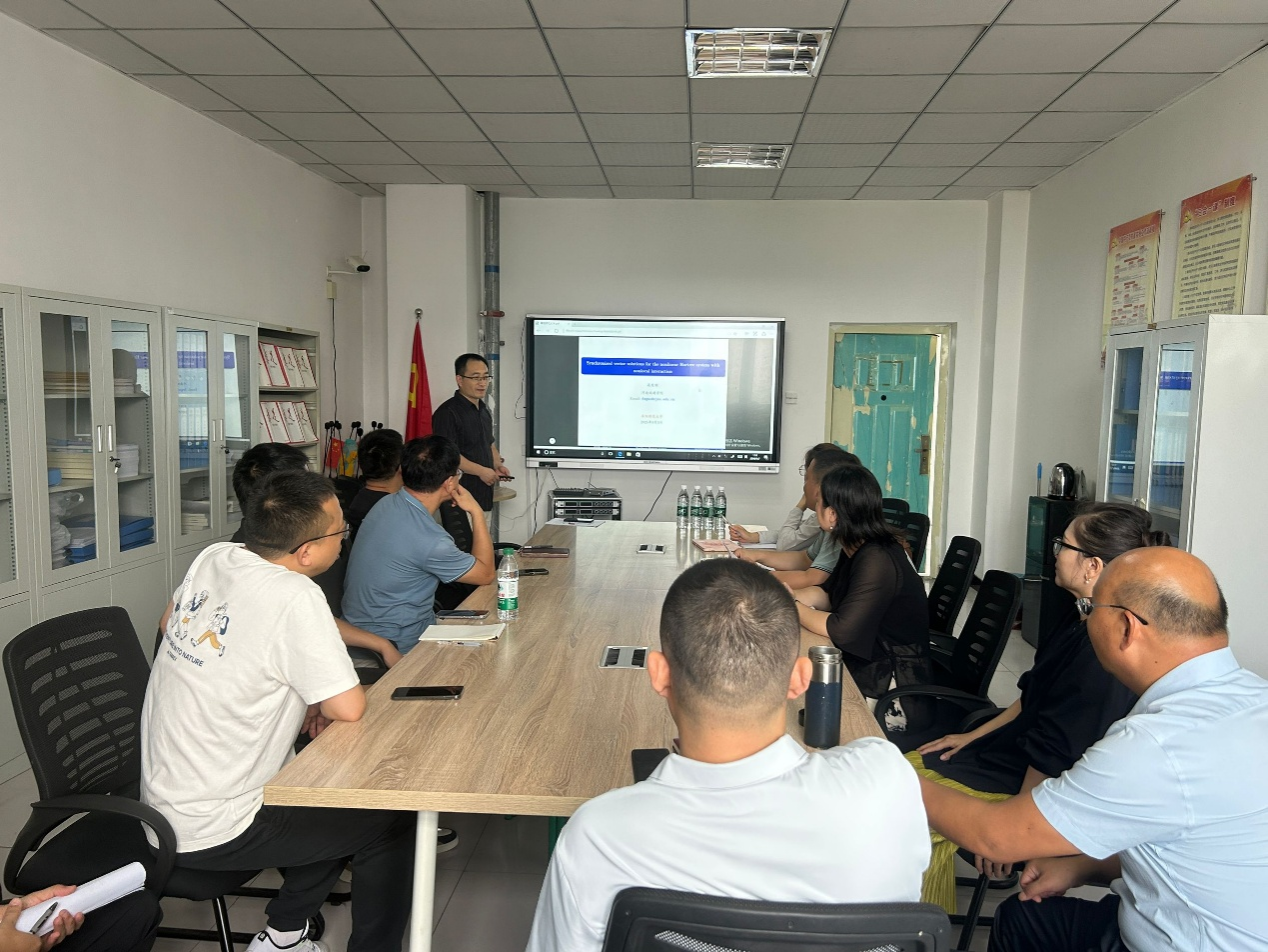 报告会上,高发顺博士以非线性Hartree系统的物理背景与研究现状为切入点,系统阐述了其团队在构造该系统无穷多解方面的最新成果,基于临界点理论和变分法,通过严谨的理论推导和技术性处理,证明了非线性Hartree系统的解的存在性。报告尾声,参会教师围绕解的存在性、解的正则性、研究问题的推广等议题踊跃提问,双方展开了热烈而深入的学术探讨。