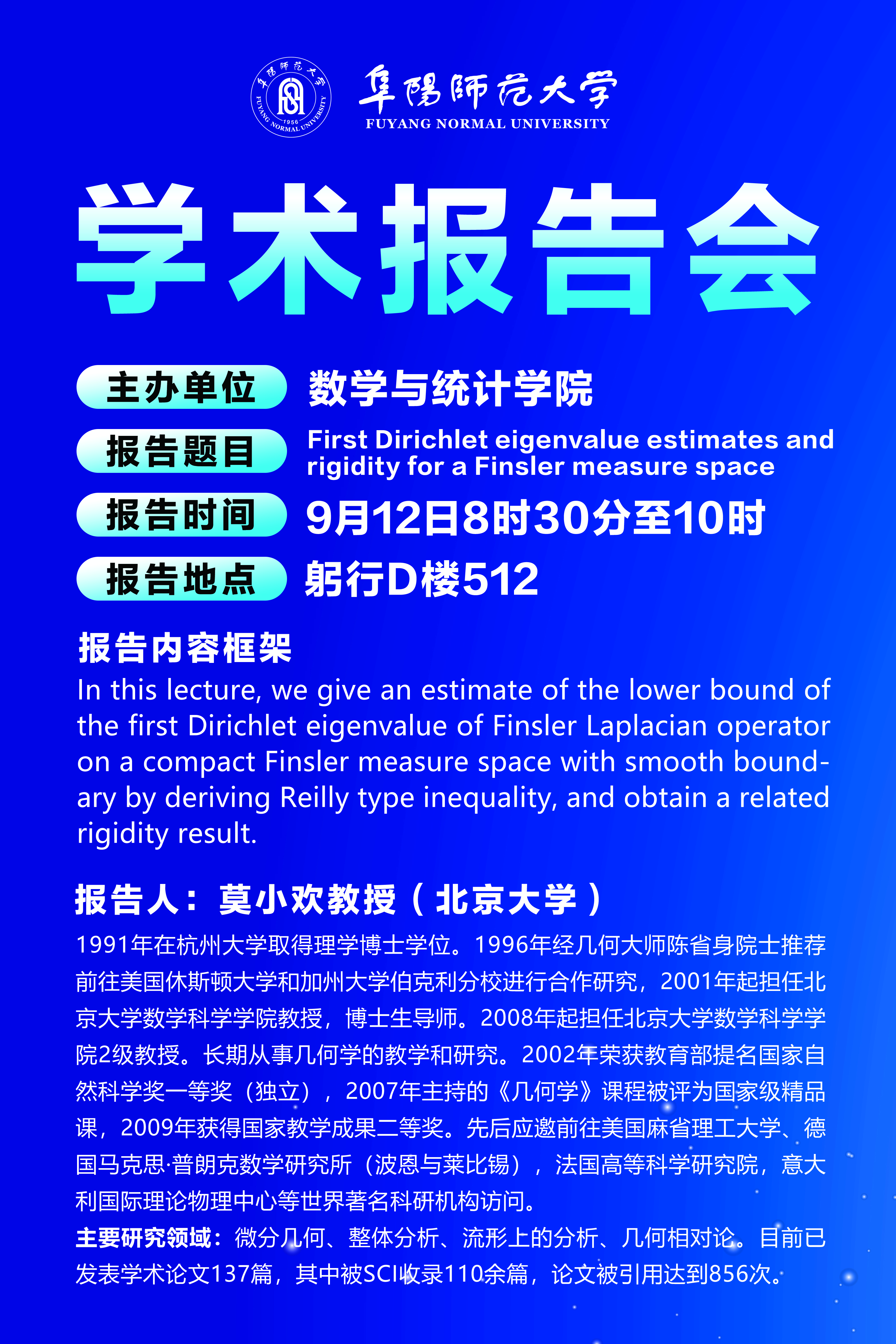 学术报告预告:莫小欢教授...