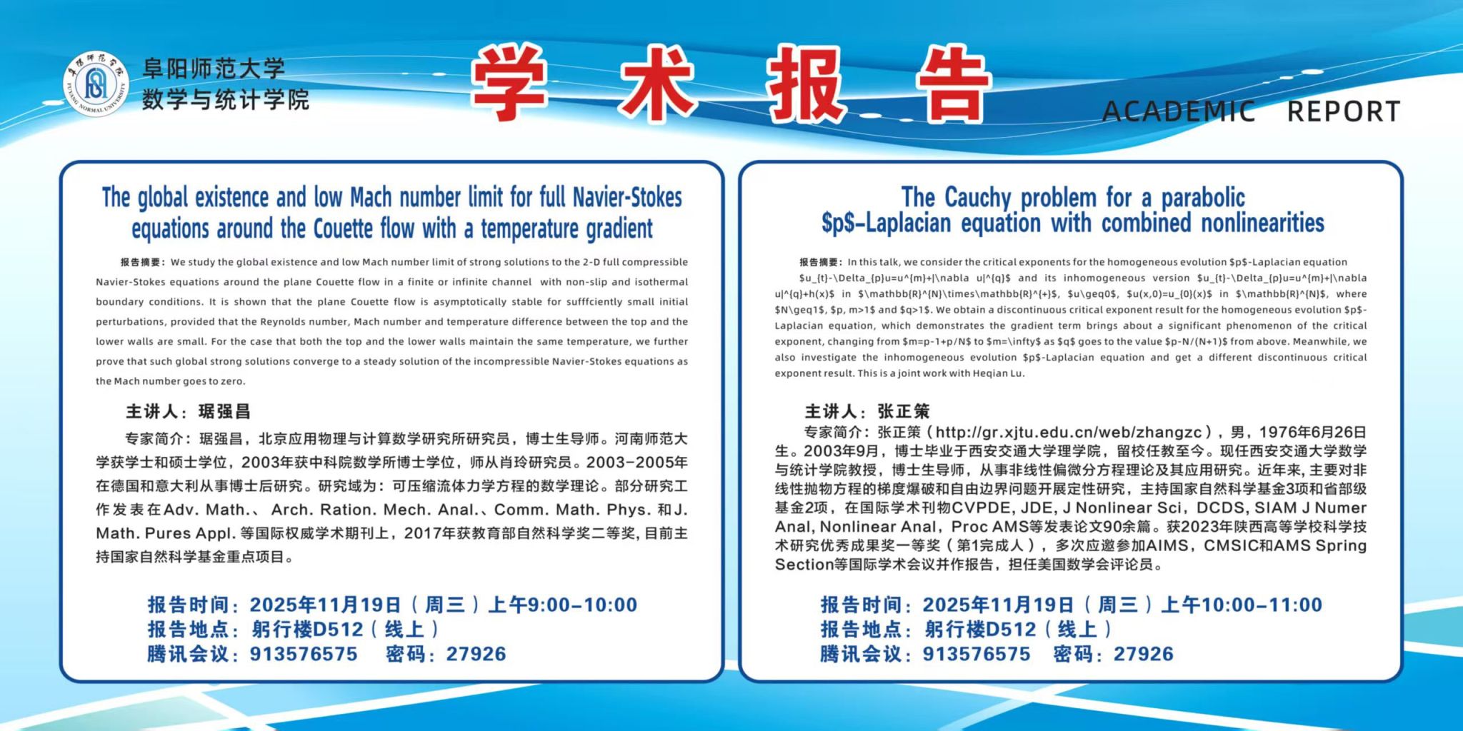 学术报告会预告:11月19日线上学术报告
