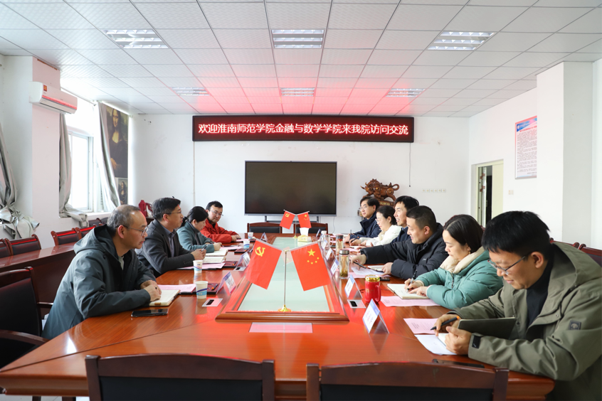 12月19日下午,淮南师范学院金融与数学学院院长霍玉洪、党委副书记周洁等一行前来我院访问交流,我院党委书记吴学军、副院长(主持工作)唐剑等接待了霍玉洪一行。