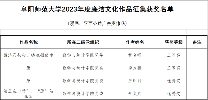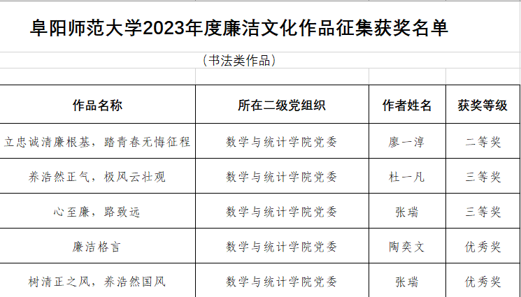 近日,学校2023年度廉洁文化作品征集活动评选情况揭晓,我院推荐的作品获二等奖1项,三等奖4项,优秀奖4项,我院荣获优秀组织奖。