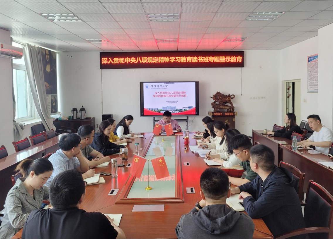 为进一步加强党风廉政建设,增强党员干部的纪律意识和规矩意识,4月28日,我院组织开展深入贯彻中央八项规定精神学习教育读书班专题警示教育,学院党委书记、院长盛兴平主持会议,全体理论学习中心组成员参会。