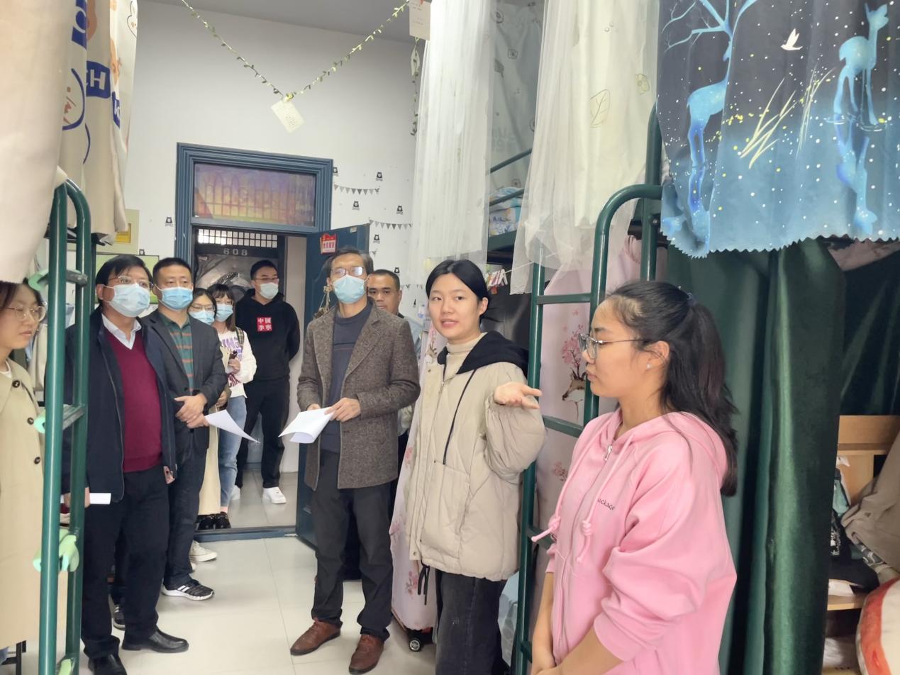评审组一行实地来到宿舍,着重从“寝室制度”、“文化建设”、“学风建设”、“寝室卫生”、“安全防范”、“遵章守纪”等方面对9个宿舍进行全面考核。