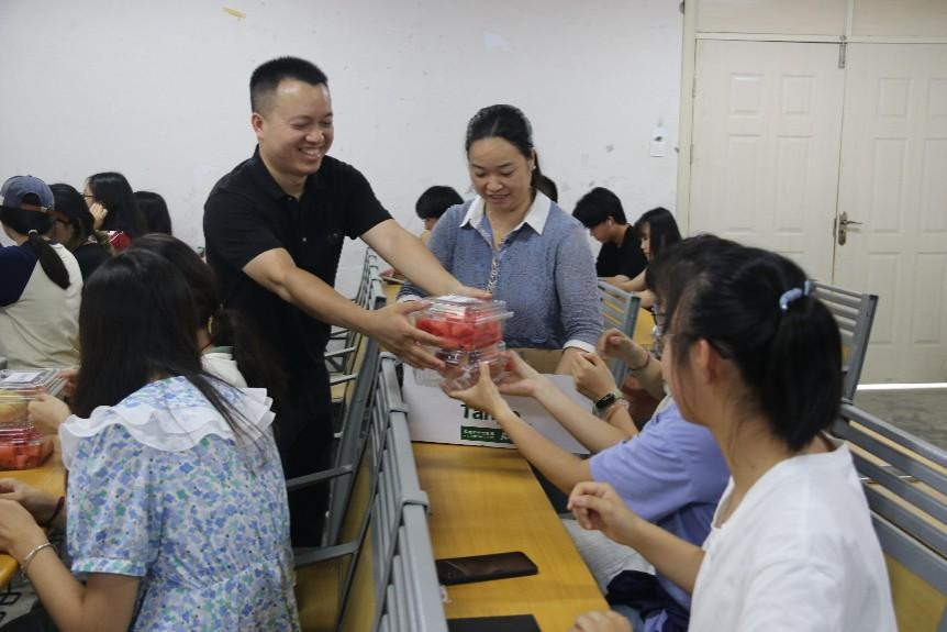 “红色的瓜瓤预示着红红火火,香甜的桃子饱含着浓情蜜意!”,7月24日,我院为清河、西湖两个校区的暑期留校学生送上西瓜和桃子,在炎炎夏日里送来一丝清凉,带给学生关怀和鼓励。此次活动得到了学院优秀校友、海天考研创始人凌峻的大力支持。慰问活动由学院党委副书记徐悦主持,学院副院长孙娓娓、学术副院长林记及相关辅导员参加。