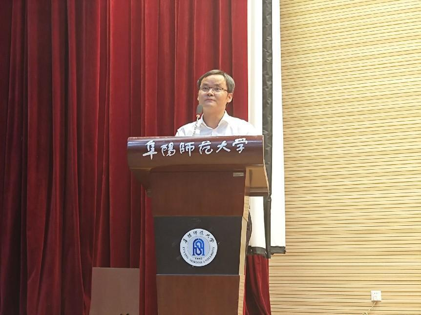 数学与应用数学(师范)专业负责人储亚伟教授作为教师代表发言,鼓励新生积极参加各类专业竞赛,全方位提升自己的能力,何湘、夏雨欣分别作为新、老生代表发言。我院2003届毕业生,阜阳市第三中学副校长、安徽省特级教师夏炳文作为优秀校友代表发言,他用充满诗意的语言传递殷切的祝福,倡导同学们要尽快适应大学生活,合理规划自己的时间,积极参与活动来锻炼能力,成为对社会有用的人才。
