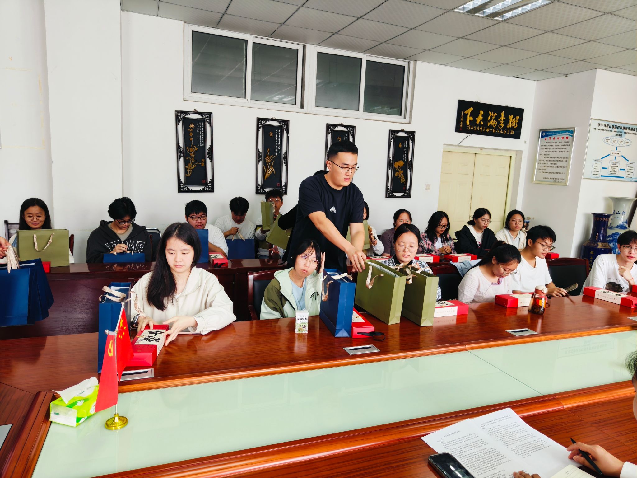会后学院为学生送上中秋月饼与慰问品,让同学们在异乡感受家的温暖。“收到月饼特别暖心,感觉像在家人身边过节。” 一名省外留校学生表达着自己的激动心情。此次座谈会既关注了学生假期的思想动态,更传递了学院关怀,为省外留校学生度过充实、安全的双节假期奠定基础。