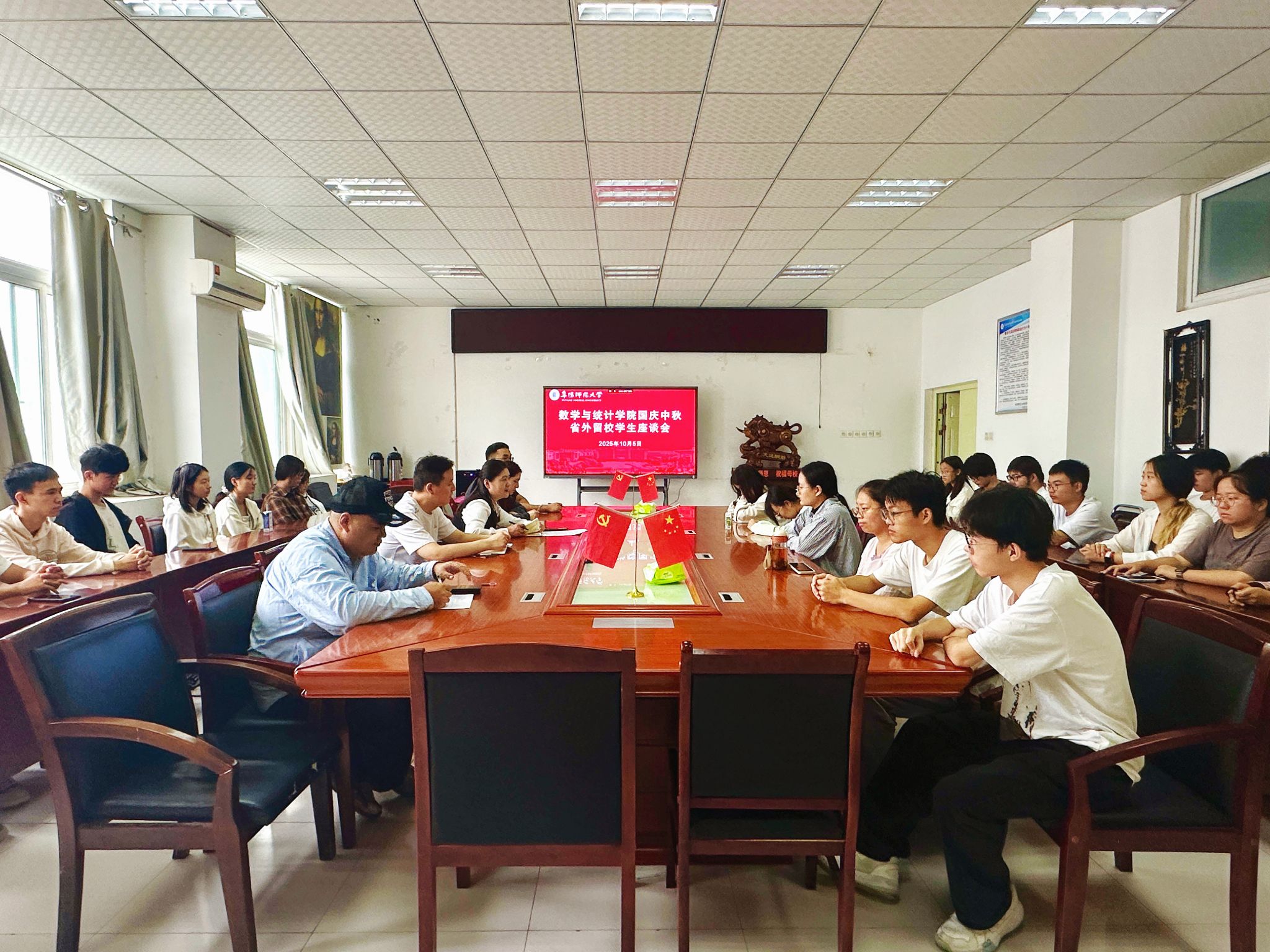 10 月 5 日,我院举办国庆中秋省外留校学生座谈会,慰问留校学生、传递学院关怀。学院党委副书记、纪委书记徐悦主持会议,26 名省外留校学生及辅导员代表参会。