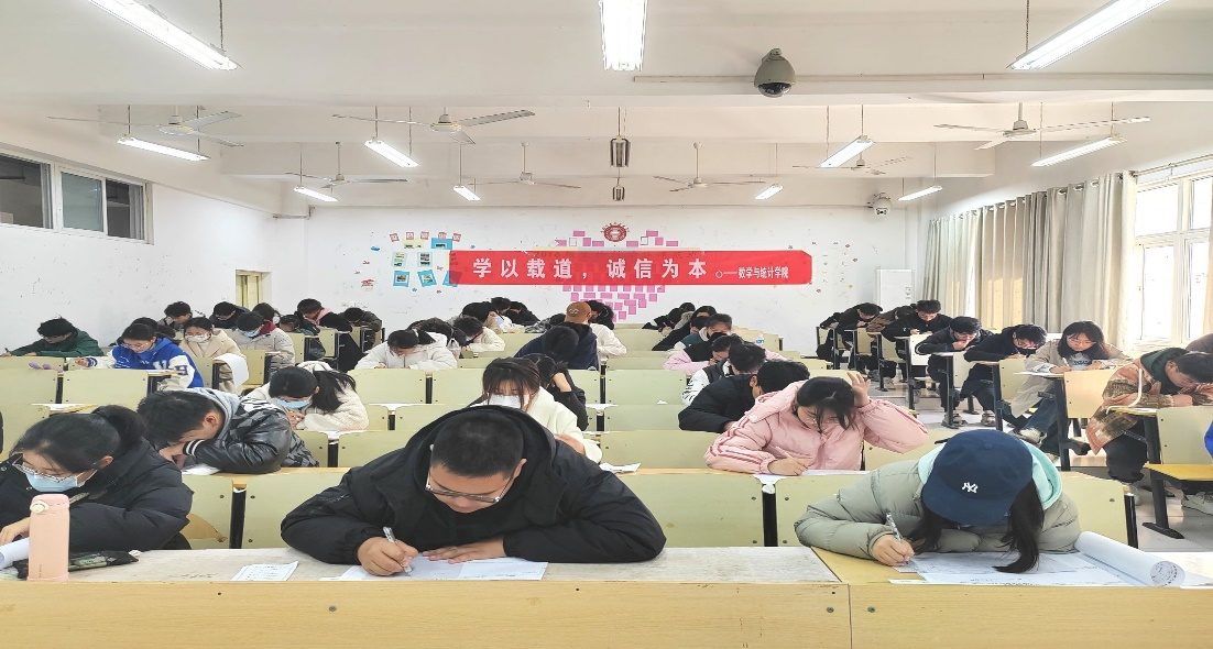 本次竞赛由数学与统计学院负责具体组织实施。学院领导高度重视,工作人员提前谋划,精心筹备,制定出了详细的竞赛方案。为保证竞赛公平、公正,数学与统计学院学生会广泛征集志愿者,成立监考小组,考前对监考小组进行集中培训,强调严守监考纪律,确保考试顺利。比赛过程中,同学们遵守考试规则,认真作答,在试卷上展示自己对数学的热爱和对逻辑的思考。