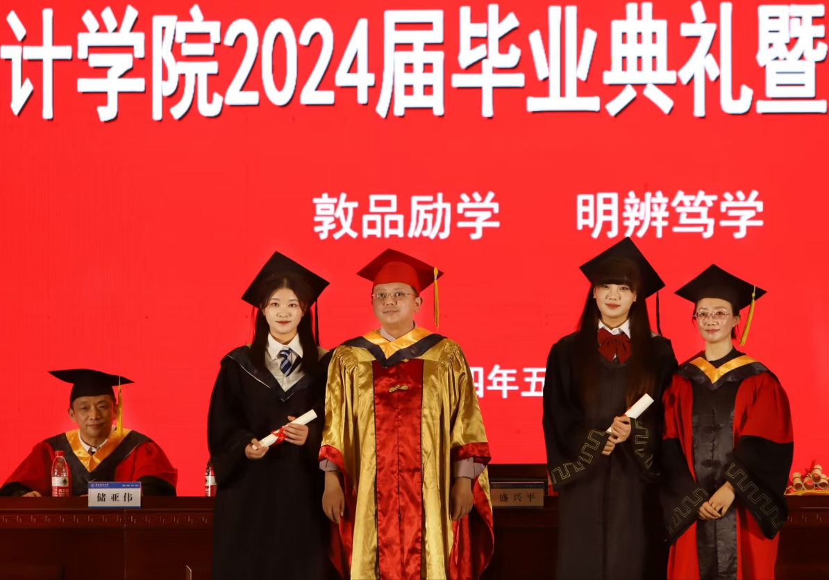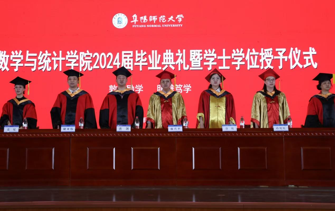 典礼在庄严的国歌中拉开帷幕,盛兴平结合数学定理,用数学名词寄语毕业生,希望同学们坚守公理规则,在有限的目标中追求无限的价值,更要正确理解直与曲,学会以直代曲,正确处理必然与或然的关系,做好人生不等式,成就精彩人生。教师代表张冕也为毕业生送上祝福,希望同学们牢记学科意识,不断守正创新、不断奋力拼搏。毕业班辅导员代表唐慧慧深情寄语毕业生,回顾了四年里同学们的成长点滴,用专属辅导员的温情嘱托着每一位即将毕业的学子。毕业生代表高琰、徐成林,非毕业班学生代表梁梦茹依次发言,“数”说了自己在数学与统计学院的点滴日子,也让同学们怀揣美好回忆向未来迈进。之后徐悦作总结讲话,祝贺2024届毕业生顺利毕业,希望大家敢为人先、敢于突破、志存高远,求真学问、练真本领,在实践中摸爬滚打,在担当中历练,在尽责中成长。