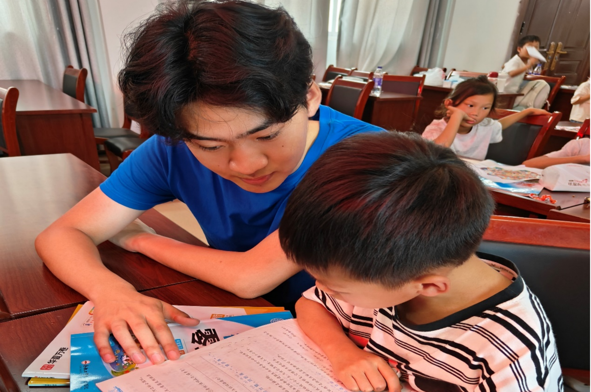 作业辅导环节,充满着温暖与感动。面对一道道解不出的数学题、一篇篇无从下笔的作文,团队成员始终耐心陪伴,从基础概念入手,一步步引导孩子们找到解题思路与写作灵感。当孩子们紧锁的眉头逐渐舒展,成功攻克难题时,有个孩子悄悄塞来一颗糖,甜甜的滋味在口中散开,更在团队成员心间流淌。这颗小小的糖果,是孩子们对知识的渴求,更是对团队成员真诚信赖的见证。在知识的传递中,团队与孩子们实现了双向的成长与奔赴。