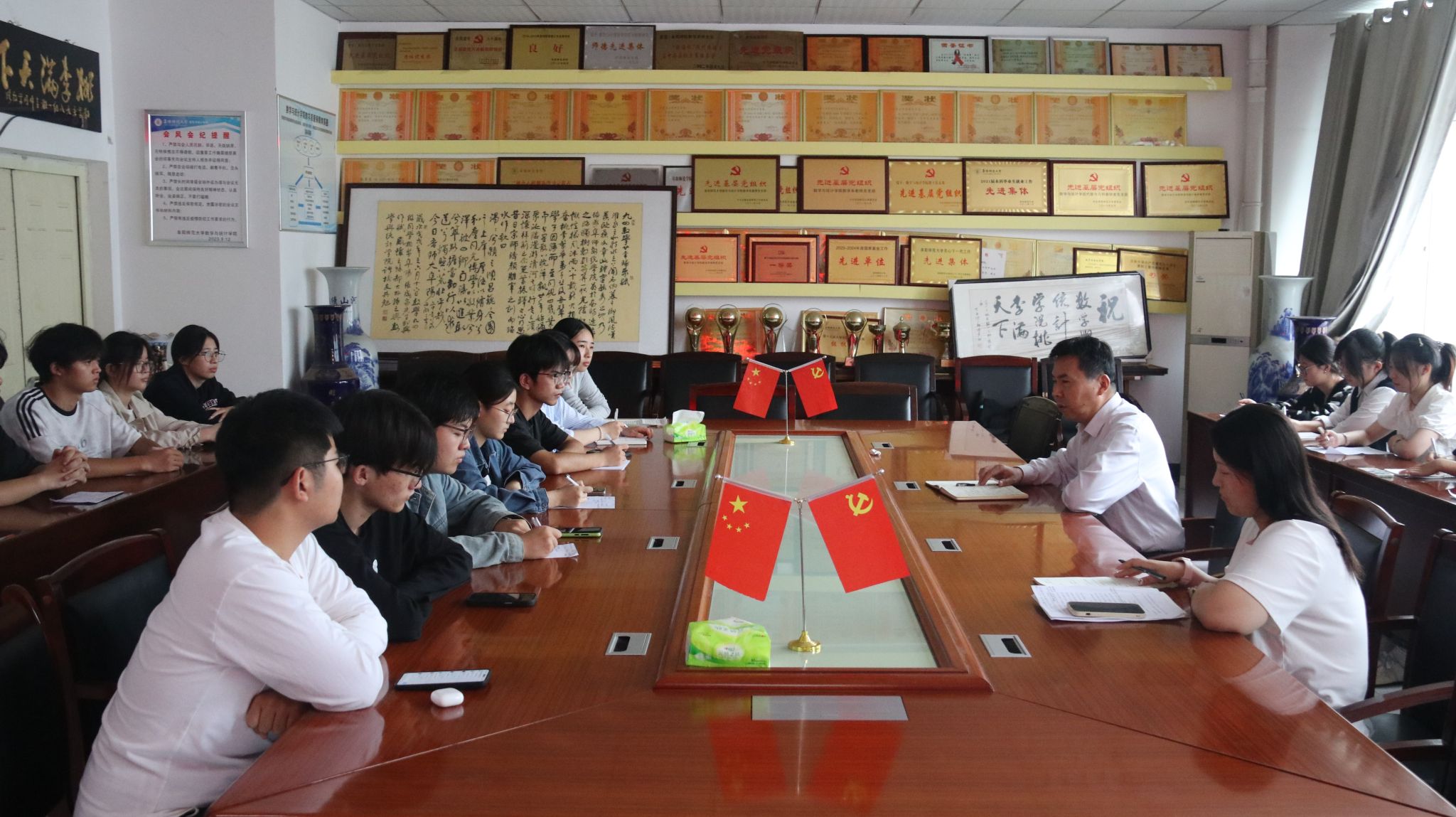 9月28日,数学与统计学院团委在躬行D楼512会议室召开秋季学期团学工作专题会议。学院党委书记吴学军出席会议并讲话,团委负责人李育鹏及学生会各部门部长参加会议。