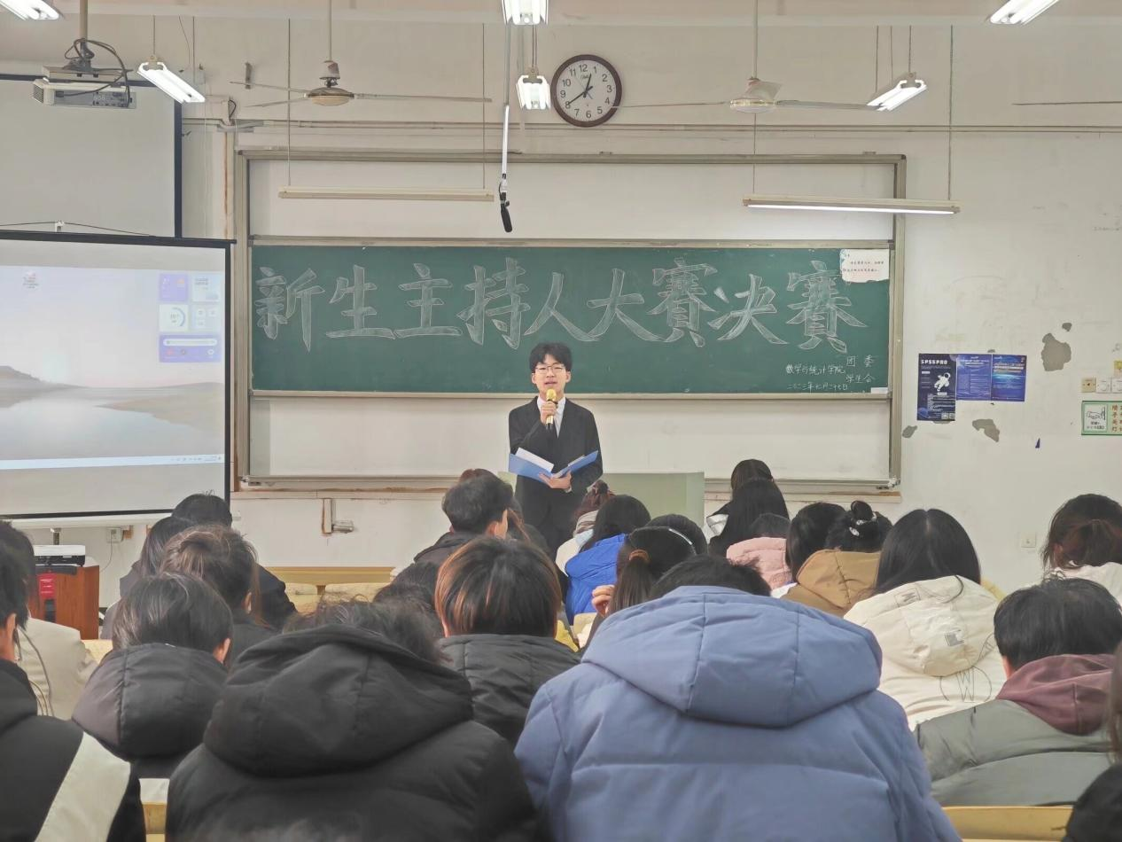 为丰富同学们的校园文化生活,给每个有主持梦想的同学提供一个展现自我的舞台,数学与统计学院于12月24-27日在西湖校区躬行d楼409教室举行了新生主持人大赛。