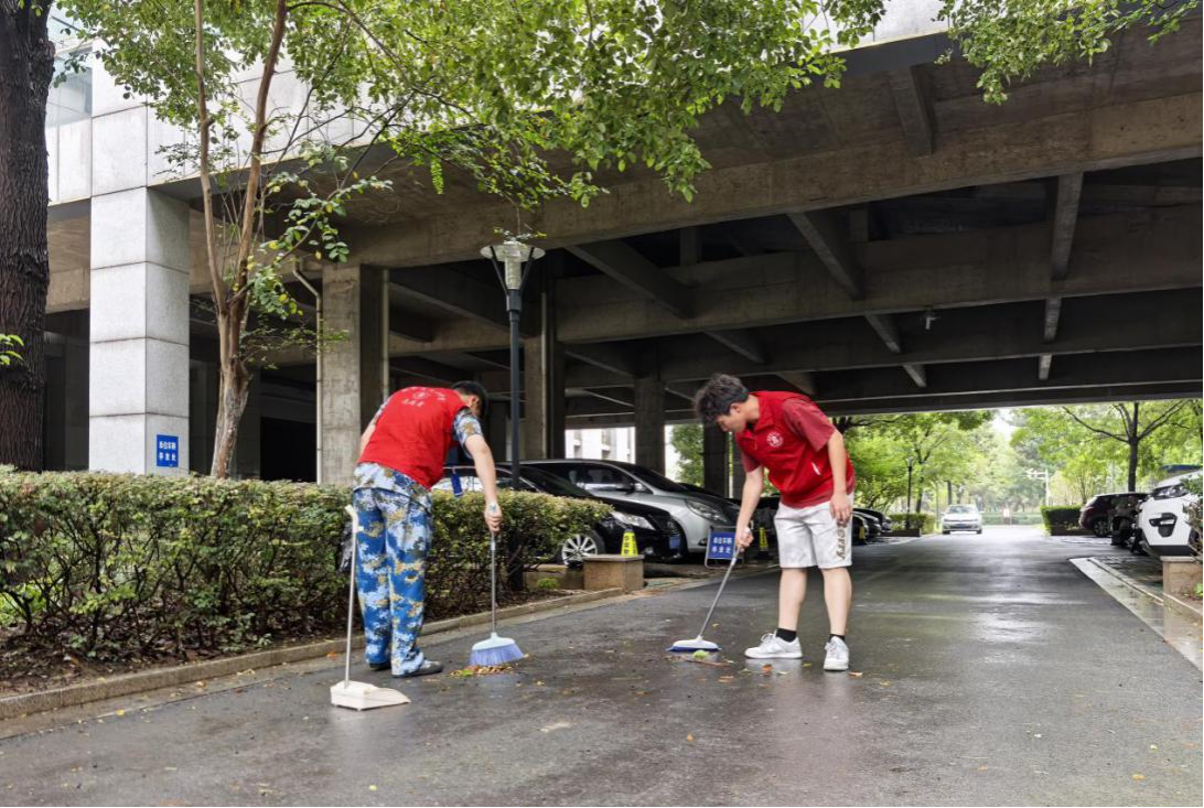 志愿清扫校园:劳动实践献真情