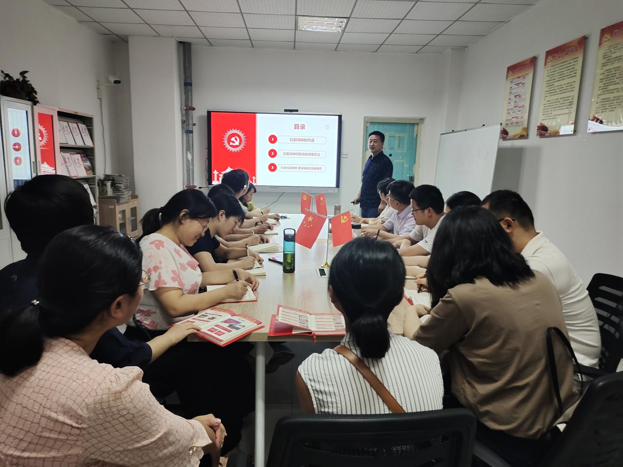 唐剑以“弘扬红船精神 谱写时代篇章”为题,从“红船精神”的内涵、“红船精神”的重要意义、弘扬“红船精神”谱写新篇章三个部分带领支部党员重温“红船精神”和中国共产党人初心使命。