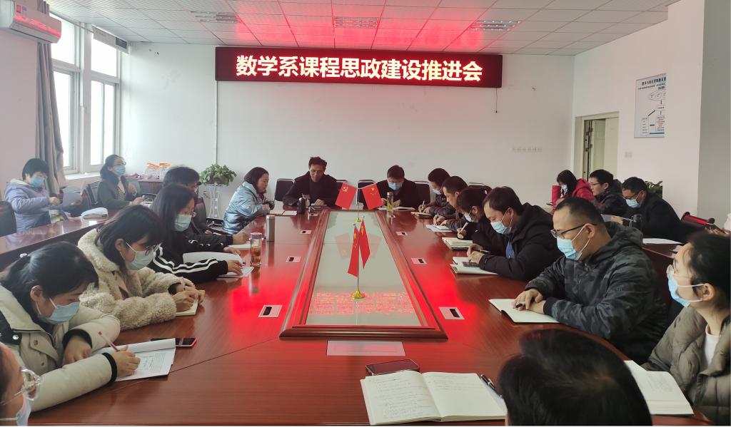 3月23日下午,数学系召开“课程思政”建设推进会。学院党政领导,相关支部书记(系主任)、教师代表参会。会议由数学系教师党支部书记、系主任林记博士主持。