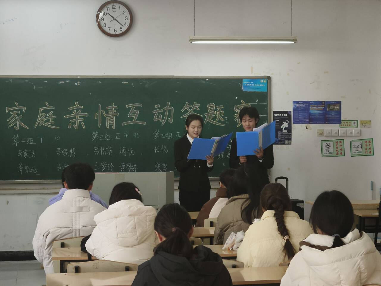 春节习俗知多少——家庭亲情互动答题赛。活动分为线上、线下两部分。2月20日,数学与统计学院各班级心理委员通过线上平台发布答题链接,组织同学们和家人一起围绕贴春联、扫尘、初岁、年夜饭等相关问题参与线上答题赛。经过激烈角逐,共有16名选手进入3月2日的线下总决赛,决赛分为必答题和抢答题两个环节,共评选出一等奖1名,二等奖2名,三等奖3名。