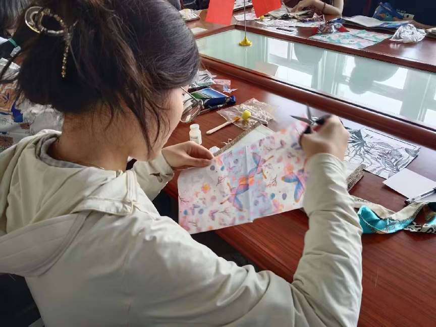 母亲节特别活动“拼贴时光,母爱'袋'回家”将艺术治疗理念融入心理育人实践。20余名学生通过裁剪、拼贴、装饰等工序,将帆布包改造为独具匠心的母亲节礼物。活动现场,学生们还书写了祝福明信片,用创意与仪式感传递对母亲的深切爱意。