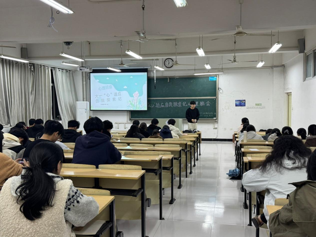 探自我,心适应——锚定成长新航向。针对大一新生校园适应与角色转变的核心需求,班会以“心适应·自我探索”为主题展开。各班心理委员借助PPT载体,系统呈现校园环境融入要点与角色转变常见困惑,通过趣味自我特质测评量表、典型适应案例分享等形式,引导新生敞开心扉。在分组讨论中,同学们围绕“如何快速融入校园”“大学目标如何确立”等话题积极交流,在思想碰撞中明晰自我探索方向,逐步建立班级归属感与集体认同感,为大学生活奠定坚实心理基础。
