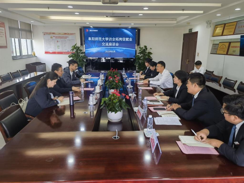 季爱新从人才培养、办学底蕴、专业特色、学科优势等方面详细介绍了学校发展历程及近年来发展取得的成绩,希望双方以本次访企拓岗专项行动为契机,进一步深化合作、促进交流,在毕业生就业、人才培养、科学研究、成果转化等方面拓展合作空间,推动双方共赢发展。颍上县委教育工委书记、教育局局长许宗峰对阜阳师范大学长期以来给予颍上教育的支持表示感谢,并详细介绍了颍上县教育发展现状,希望进一步深化与我校的合作交流。颍上二中党委书记、校长朱超,颍上县江山实验高级中学支部书记、理事张大成,颍东农商银行党委书记、董事长姚清,平安银行阜阳分行行长徐双凯分别介绍了各自单位的发展现状及人才需求情况,希望能够在就业实践、科学研究等方面加强交流合作,实现优势资源共享互补。
