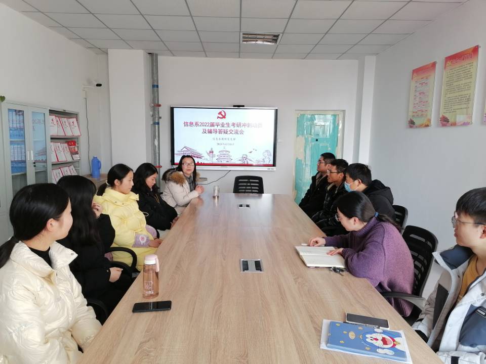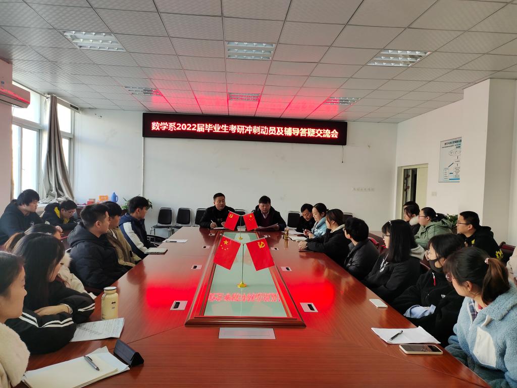 为进一步激发考研学生的斗志,为考研学生加油鼓劲,增强学生考研信心,12月21日下午,我院为2022届毕业生举办考研冲刺动员答疑交流会。院长盛兴平、副院长唐剑,各系部主任、专业负责人、毕业班辅导员以及部分2022届考研学生参加了交流会,会议由各系部主任主持。