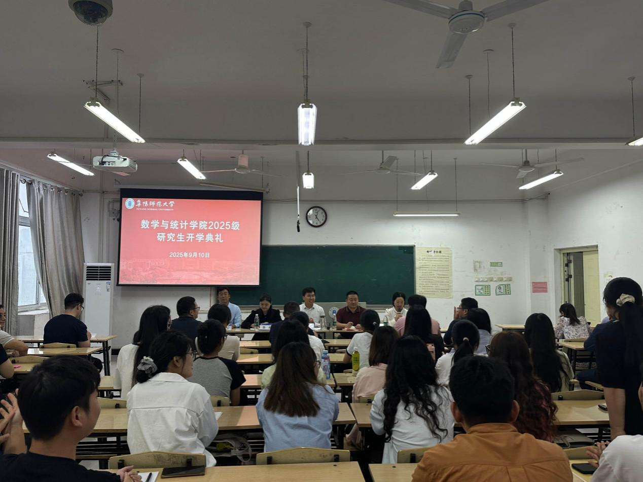 9月10日,数学与统计学院2025级硕士研究生开学典礼在D楼503教室隆重举行。学院党政领导、2025级全体研究生和研究生导师、研究生秘书、研究生辅导员、研究生党支部书记以及2024级研究生代表等出席大会,会议由学术副院长林记主持。