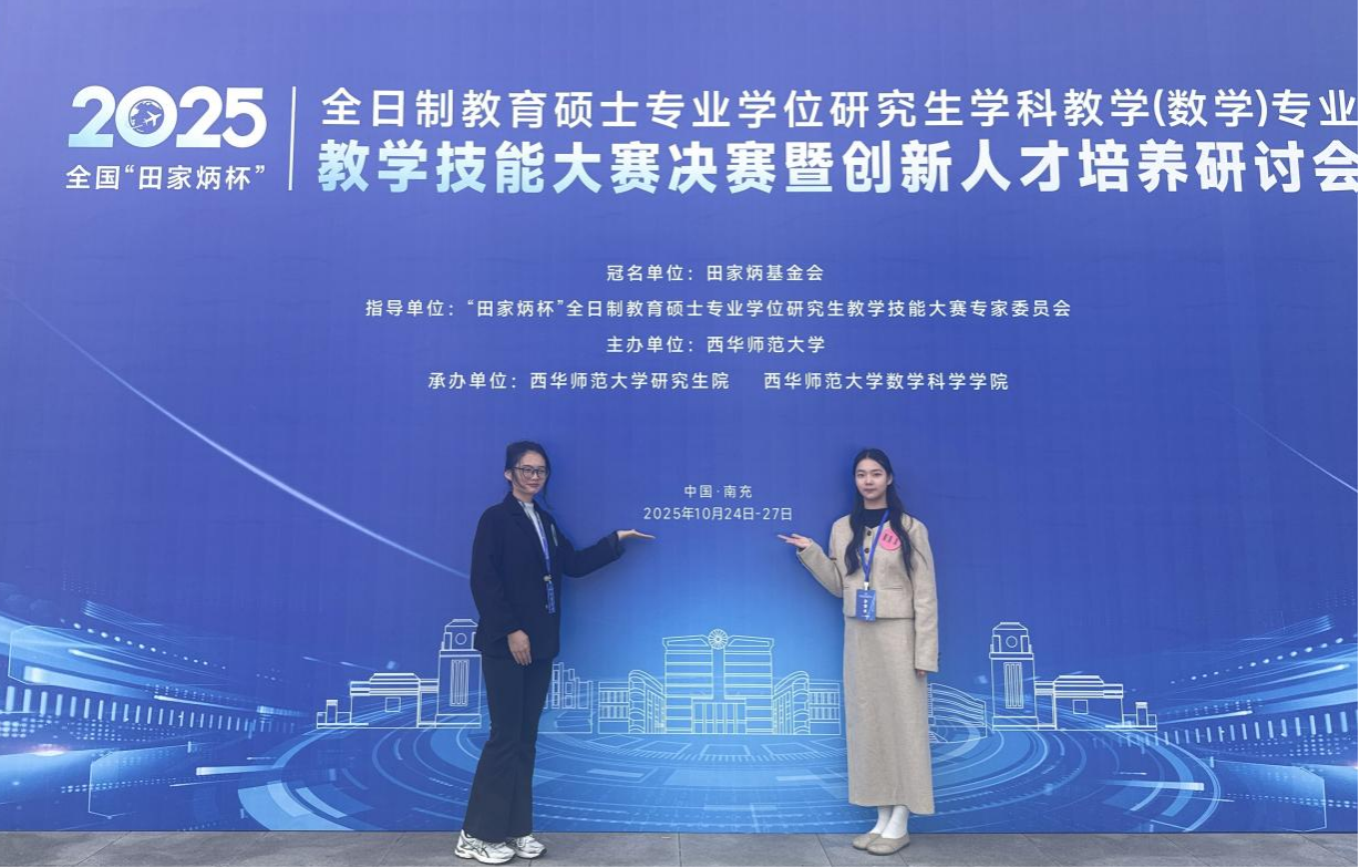 10月24日—26日,2025年全国“田家炳杯”全日制教育硕士专业学位研究生学科教学(数学)专业教学技能大赛决赛在西华师范大学举行。数学与统计学院选派的参赛学子表现突出,其中马晓晓同学凭借扎实的教学功底与出色的现场展示荣获三等奖,张雨晴同学则凭借创新性的教学设计理念斩获优秀教学设计奖。