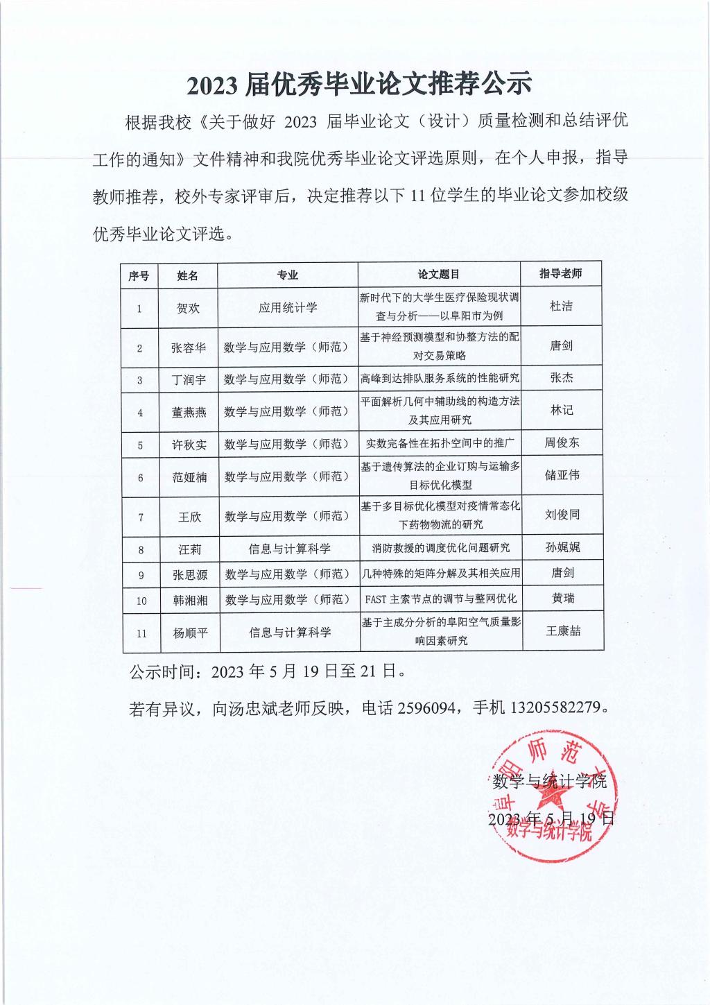 2023届优秀毕业论文推荐公示