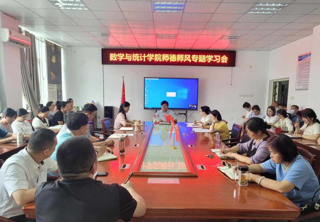 会议指出,推进师德师风建设是树立学院良好形象、促进学院良性发展的重要举措。全体教职工要把涵养师德师风素养摆在首要位置,自觉遵守职业道德、真心关爱全体学生、努力提高教学水准,传承好数学与统计学院优良教风。