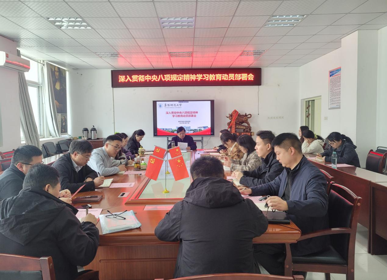 会上,与会人员认真开展“第一议题”学习,深入学习了习近平总书记关于深入贯彻中央八项规定精神学习教育的重要讲话和重要指示精神、关于加强党的作风建设的重要论述,以及中央党的建设工作领导小组会议和中共中央办公厅《关于在全党开展深入贯彻中央八项规定精神学习教育的通知》精神、省委党的建设工作领导小组会议精神。随后,大家充分研讨了学习教育方案,盛兴平宣读了《关于成立深入贯彻中央八项规定精神学习教育工作领导小组的通知》并对学院学习教育工作进行动员部署,为学院深入贯彻中央八项规定精神学习教育明确了方向和任务。