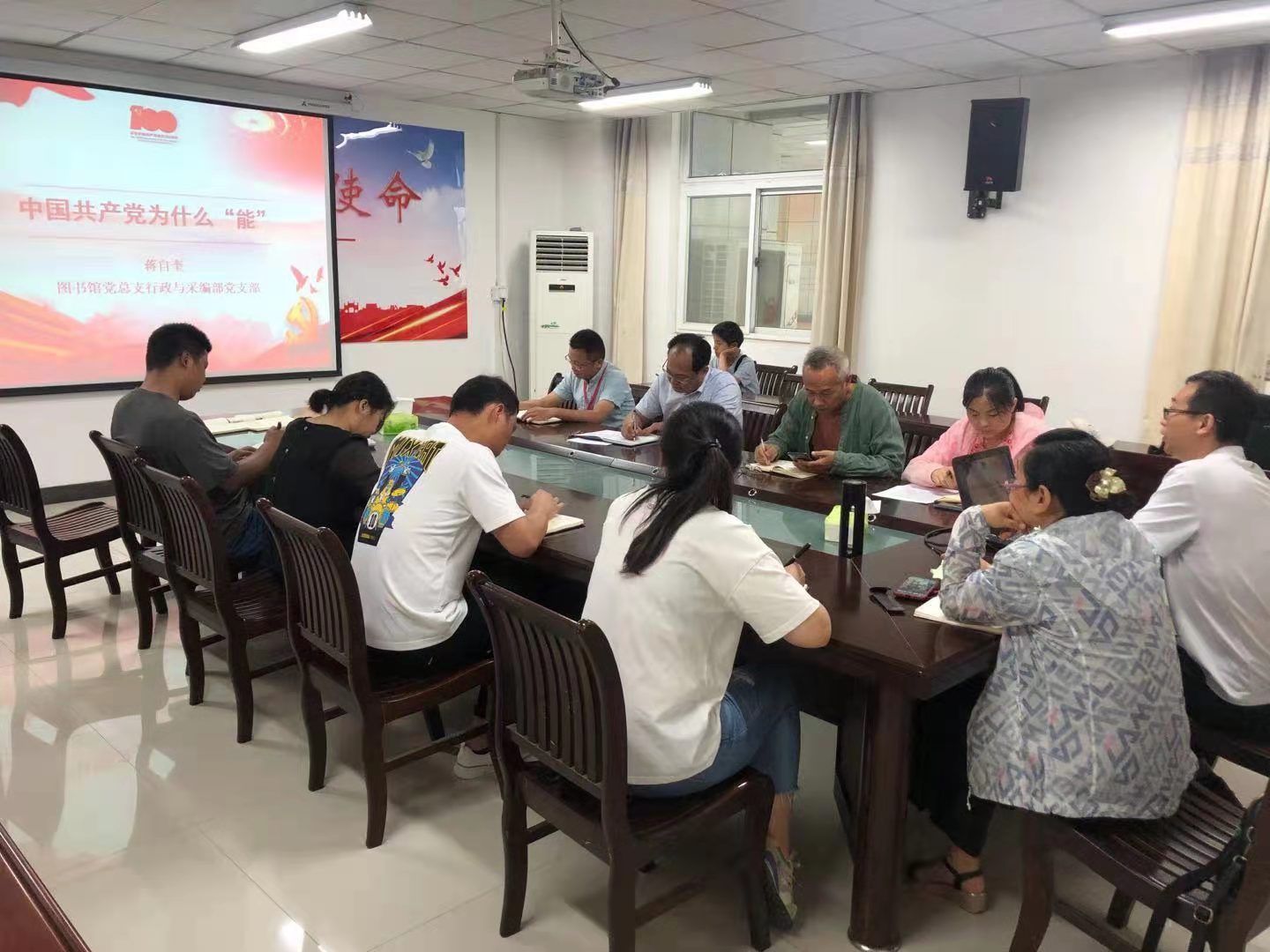 会上,行政与采编部支部书记蒋自奎、期刊技术与参考咨询部支部书记李艳梅、流通部支部书记王伟三名同志紧紧围绕近期党史学习教育所思所悟,分别从“中国共产党为什么‘能’”“中国特色社会主义为什么‘好’”“坚定中华文化自信,凝聚民族精神力量”等方面进行了思想交流和发言。