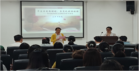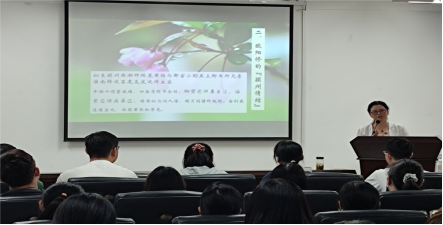 郑虹霓富有亲和力的授课风格和丰富多彩的授课内容给大家奉上了一场精彩的文化盛宴,带领大家品读了一代诗词大家欧阳修和苏轼的诗词韵味,领略了欧苏笔下的古颍州和古颍州西湖的魅力。最后,郑老师鼓励同学们要多走进图书馆,走进经典,阅读名篇,同时热爱阜阳,认同阜阳文化,增强文化自信和文化自豪感。