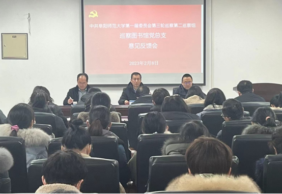 2月8日下午,阜阳师范大学党委第三轮巡察第二巡察组巡察图书馆意见反馈大会在正行楼315图书馆会议室召开,校党委巡察工作领导小组副组长、党委委员、纪委书记、监察专员季爱新,党委巡察办主任李兵帅,党委第三轮巡察第二巡察组组长、纪委副书记黄琼及第二巡察组全体成员出席会议。图书馆导班子成员、全体教职工参加会议。会议由图书馆总党总支书记梁长武主持。