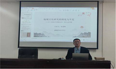 讲座主讲人是东南大学张道锋教授。张道锋以深厚的文化底蕴和条理清晰的授课风格,将地域文化、文学文献研究的辨伪、历史溯源、古籍影印以及编纂成书等一系列研究工作,深入浅出地讲解给大家,奉上了一场精彩的文化盛宴。张道锋带领大家领略了安徽省滁州市全椒县历史文化名人风采,并分享了文献收集整理提升价值的研究方法。期间张道锋与我校师生交流互动,现场为文学院研究生解疑答惑。
