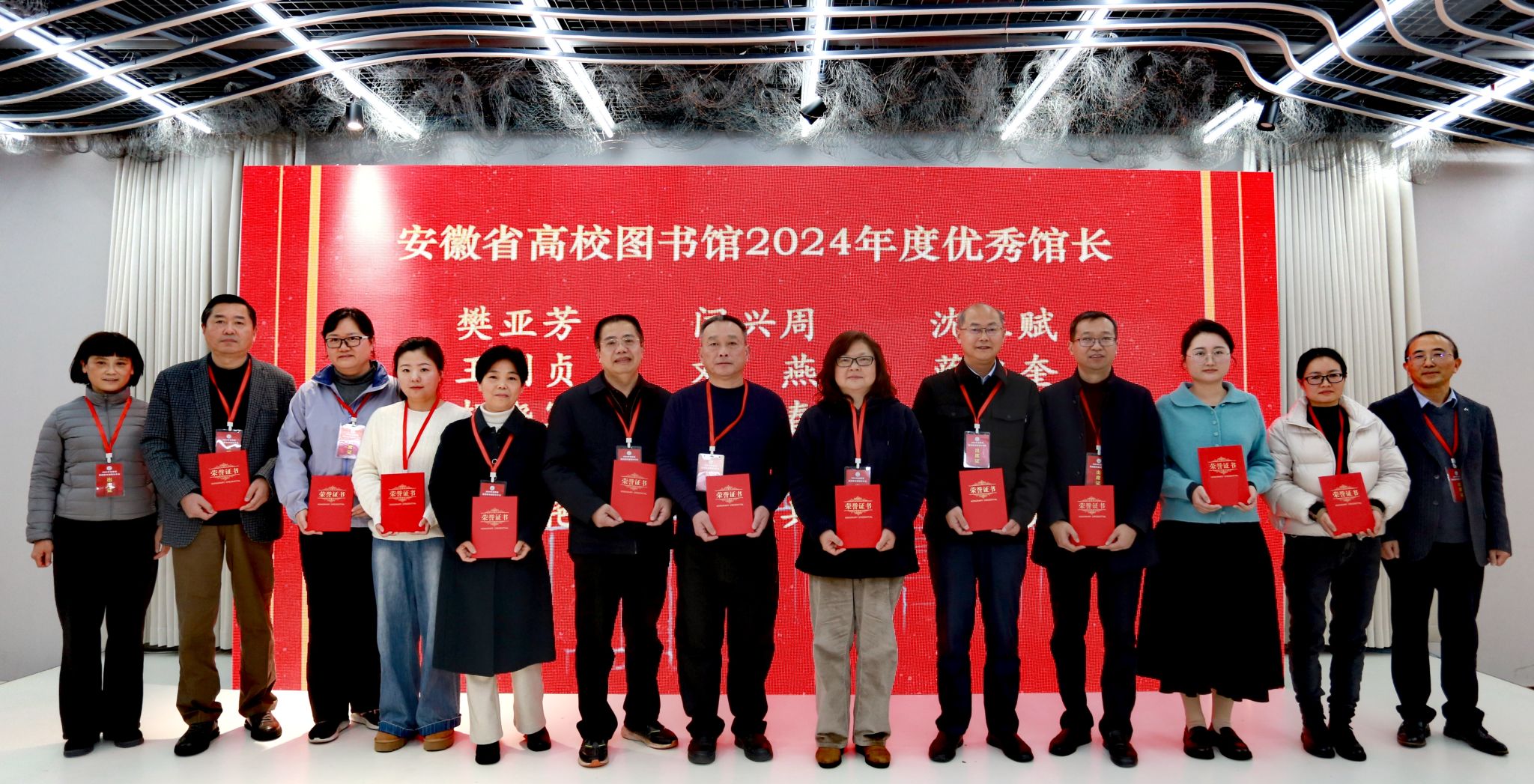 馆长年会旨在总结全省高校图书馆的建设经验,表彰安徽省高校图书馆2024年度优秀馆长、先进工作者和服务创新案例等,我校图书馆取得多项荣誉,图书馆蒋自奎获“优秀馆长”荣誉称号,印伟、郑雪林获“先进工作者”荣誉称号。我馆报送的服务案例《深耕书香校园建设,推动图书馆高质量发展—以促进纸质图书借阅为切入点》获三等奖。