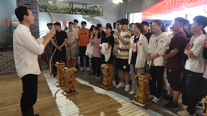 在阜阳市弓箭协会阿利弓道馆,弓道馆负责人张利老师向同学们介绍了我国传统弓箭文化和发展历史,并向学生们展示了相应的历史实物,介绍了当前传统弓箭项目在我国高校蓬勃发展的概况,张利老师还介绍了传统弓箭的基本使用方法和射艺要求,展示了基本射箭技法,学生们在教练的指点下进行射箭体验。