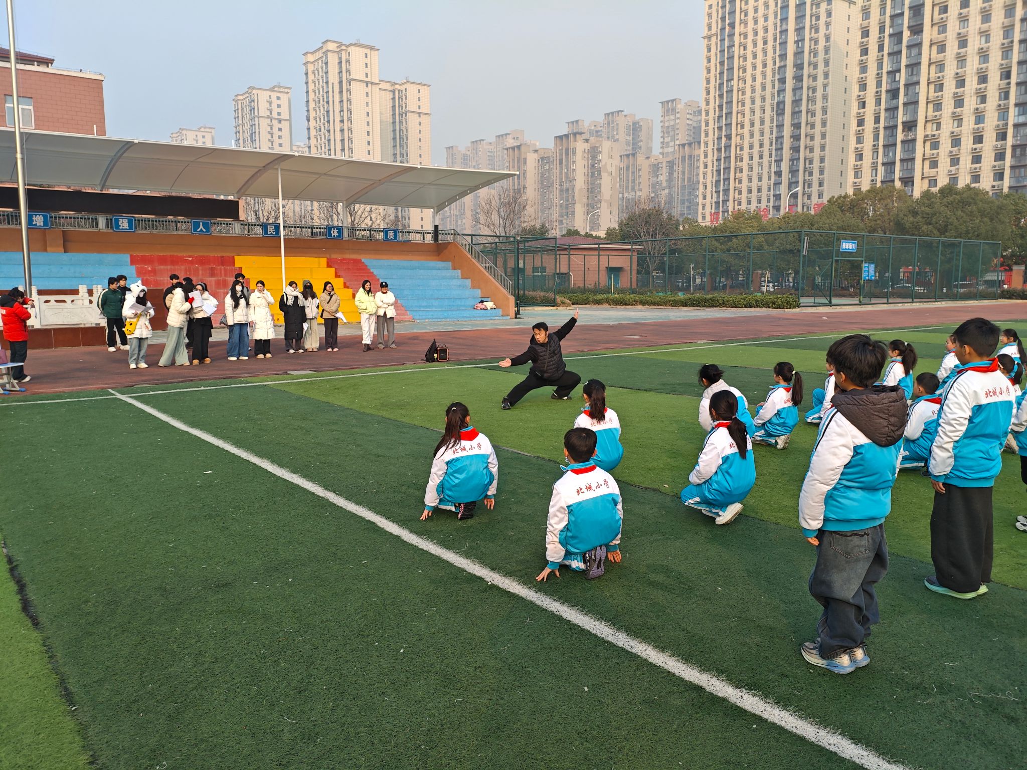 本次系列展示活动的收官之课,由阜阳实验小学实习教师阮蓉蓉带来《立定跳远》。12月19日下午,阜阳师范大学西湖校区田径场上,阮蓉蓉带领32名三年级学生,为学院2022级实习生及2023级至2025级近600名学子,呈现了一节生动鲜活的小学体育与健康课。课后点评环节,实习指导教师与阜阳实验小学北京路校长申克才深度剖析了本节课的精妙设计,细致解读了体育与健康课程标准六大理念在课堂中的落地实践,并对全体实习生提出六点殷切建议:深耕先进教育理念、创新转变教学方法、坚持常态化学习交流、强化团队协作意识、精准把握成长机遇、善用优质发展平台。