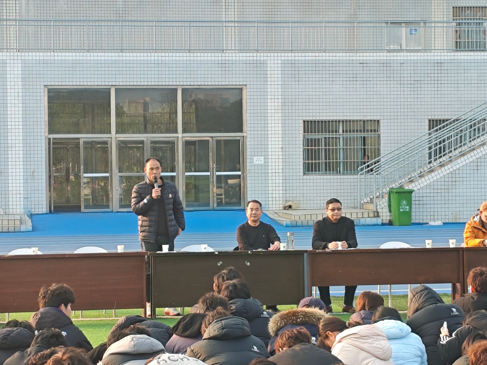 杨中皖院长代表学院向阜阳实验小学的大力支持致以诚挚感谢,勉励全体实习生传承体育学院优良传统,精益求精完成实习各项任务。范小虎书记则对实习生提出更高期许:既要苦练“硬功”,夯实专业根基、追求专业卓越;也要勤练“软功”,提升表达能力、做到能说会道;更要珍惜韶华、把握当下,为未来职业生涯筑牢坚实基础。
