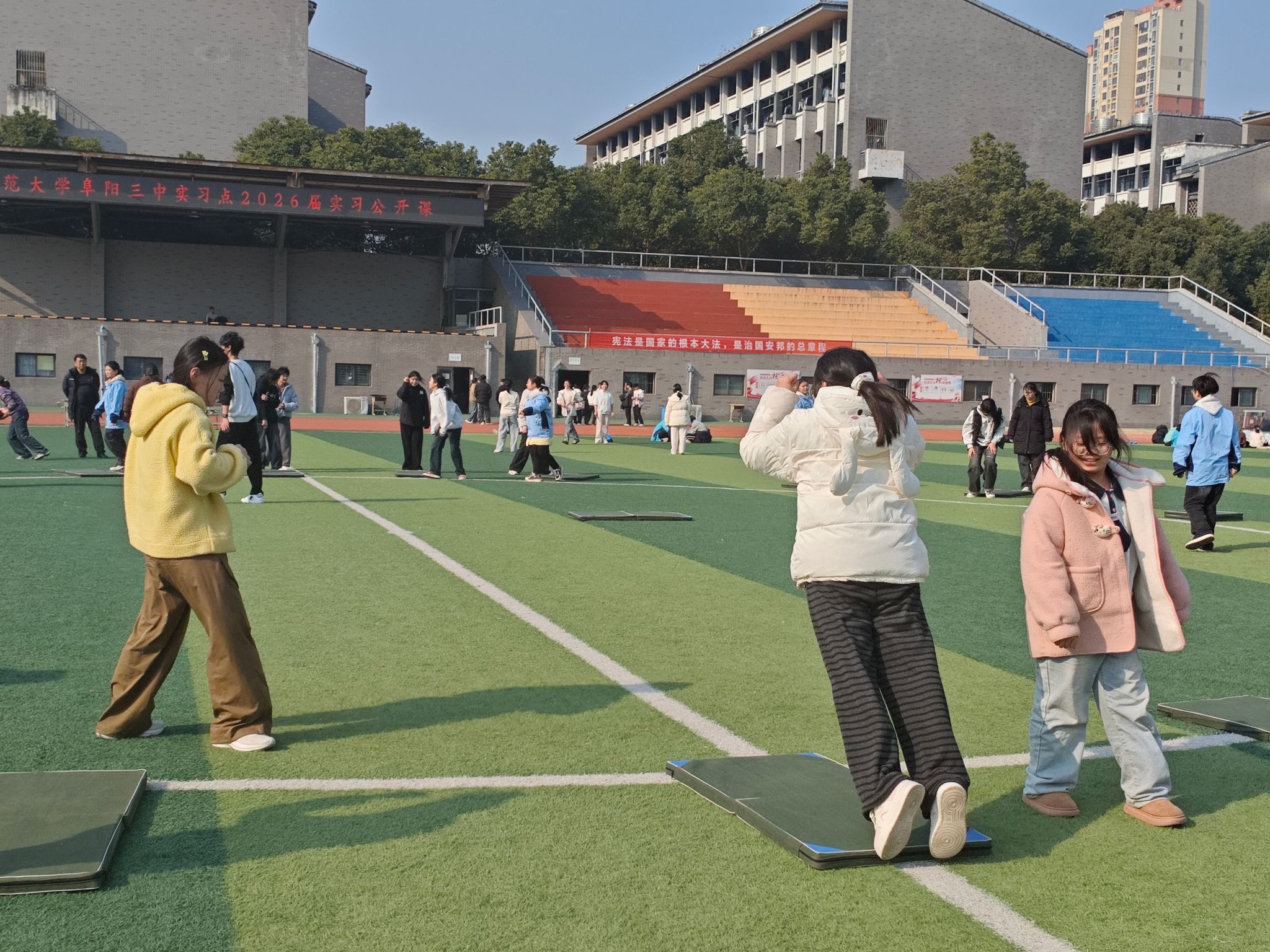 青春展风采,教坛试锋芒。2025年12月10日至12月19日,体育学院2026届实习公开课系列展示活动顺利开展。学院党委书记范小虎、院长杨中皖带队,全体实习指导教师与实习生共同观摩了多节优秀实习公开课,见证了准体育教师们的教学初心与专业成长。