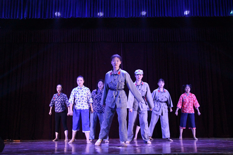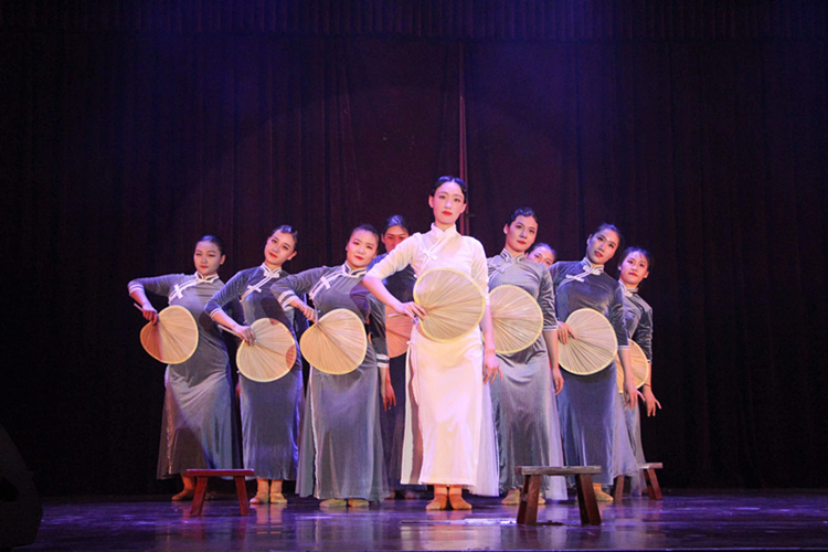 中国民舞历经千年传承,生生不息。其舞蹈基础要求更是严格,讲究柔和优美,形神兼具。开场基本功展示,演员拉开柔美的身子,随着舒缓的音乐起起伏伏,仿佛一个个天使飘然欲飞。他们脸上挂着自信昂扬的笑容,毫不畏惧。《八女投江》主题鲜明,是革命现实主义与浪漫主义的完美结合,是对红色基因的艺术传承。在党的领导下,无数革命先辈为保家卫国,为实现理想信念不惜付出宝贵生命,这种精神给予了我们强大精神动力。双人舞《九儿》,由文学大作《红高粱》改编讲述了一段家与国,爱与恨,生与死的凄美故事。舞者在凄婉悲怆的主题旋律音乐中,诉说着九儿坎坷悲壮的一生。最后,伴随着舞曲《送别》的结束,本次汇报演出在李夏老师的指导下完美落幕。他们齐聚舞台,在舞台上的他们是最光彩夺目的。
