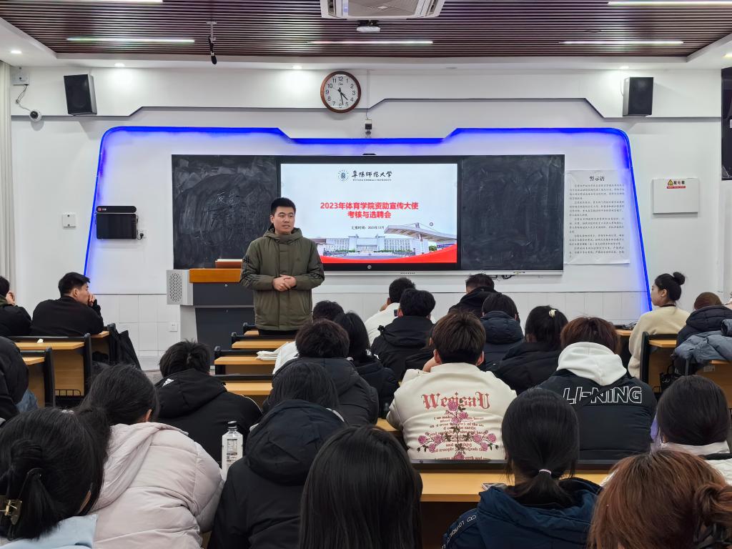 为加大学生资助宣传力度,发挥受助学生典型示范和引领作用,推进学生资助政策宣传的广度和深度,传播资助育人好声音,12月13日下午,体育学院在景行楼112教室组织召开2023年体育学院资助宣传大使考核及选聘会议。2023年学院资助宣传大使、2023级各班受资助同学参加会议,体育学院刘安国老师主持会议。