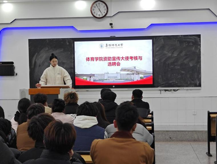 为了加强学生资助的宣传效果,并充分利用受助学生的示范作用,以扩大资助政策宣传的范围和深度,传递积极的资助教育正能量,2024年12月11日下午,体育学院在景行楼112教室举办了2024年资助宣传大使的考核和选拔活动。2024年资助宣传大使和本年度受资助学生代表参加了此次会议,会议由体育学院刘安国老师主持。