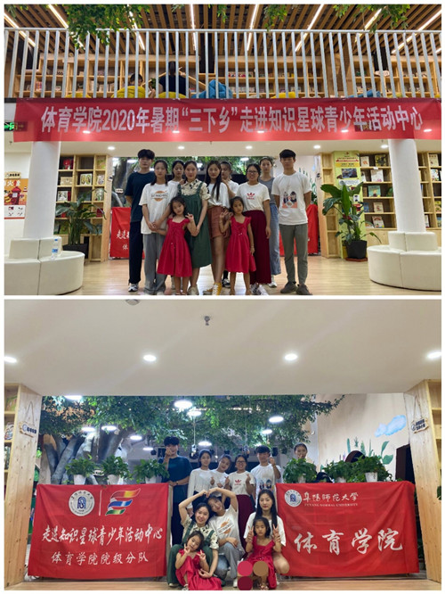 自2020年安徽省大学生志愿者暑期文化科技卫生“三下乡”社会实践活动启动以来,根据学校文件要求,在疫情防控常态化形势下,体育学院采取就地在家乡附近进行社会实践,助力服务当地经济社会发展,促进大学生在实践中成长成才。同时,体育学院院级“暖心助力留守儿童”团队于2020年8月19-21日举办暑期“三下乡”社会实践活动。在张桃老师带队下,志愿者来到阜阳市知识星球青少年活动中心。