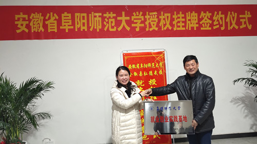 1月20日,体育学院党委书记于少华一行来到全椒县弘德武校,双方就“阜阳师范大学就业创业实践基地”的建立举行签约授牌仪式。体育学院党委副书记石有武,武术系主任汝雷,团委负责人张桃以及全椒县政协办公室主任王松,中国武术八段、安徽省武术协会常委陈复强,弘德武校校长杨玉山等参加仪式。